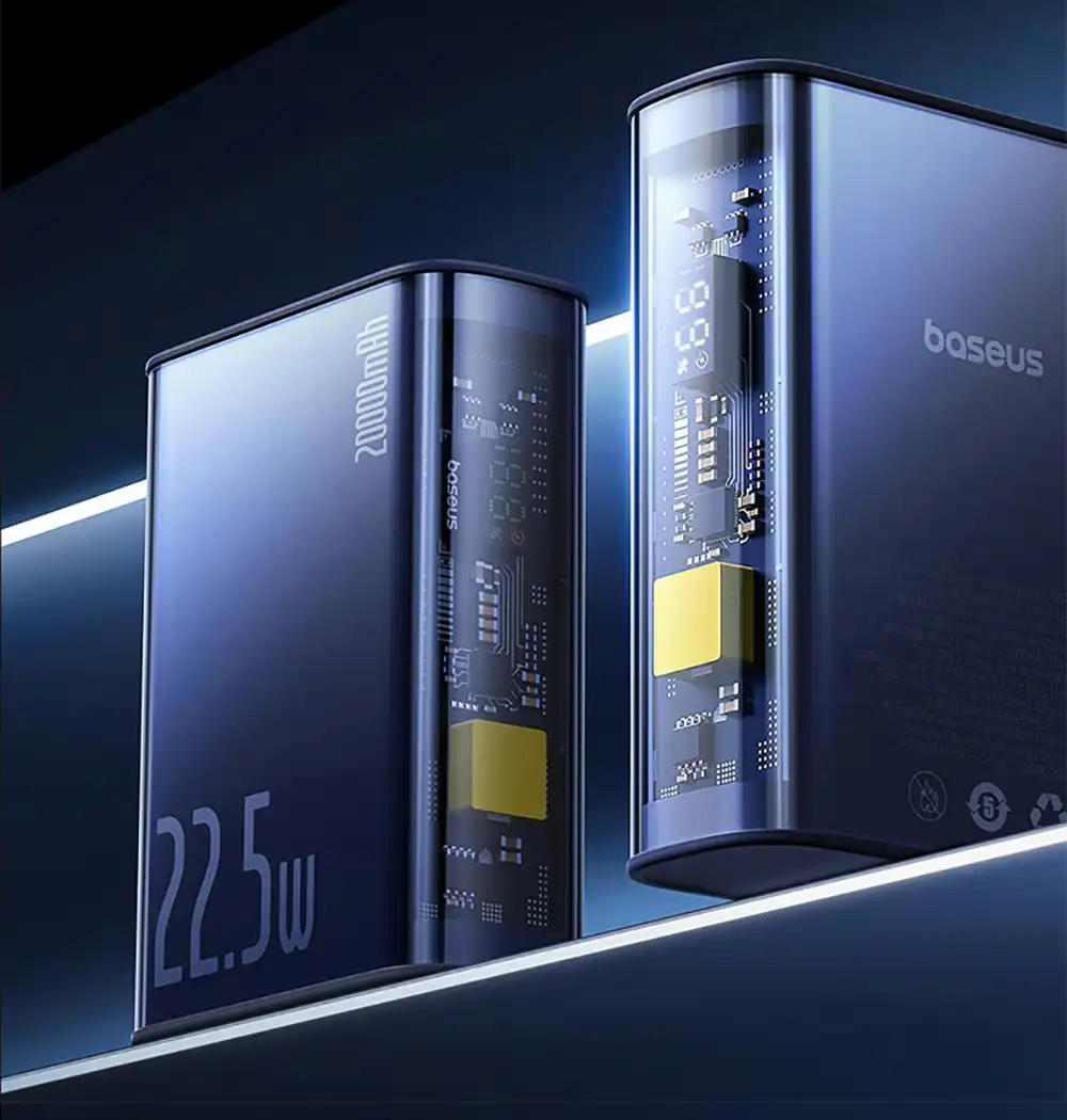 - The Baseus PPTSZ20 Semi Transparent 22.5W 20000mAh Digital Display Power Bank is an ideal companion for those who are constantly on the move. With a high capacity of 20000mAh, this power bank ensures that your devices stay powered up throughout the day. Moreover, its ability to charge your devices multiple times means you won’t have to worry about running out of battery during your busy schedule.